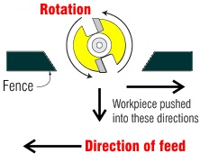 6 Never climb-cut. Always feed the stock from right to left. Against the rotation of the router bit. (see illustration)