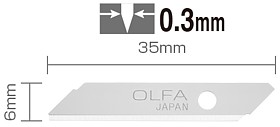 5 spare blades specially designed for the OLFA top sheet cutter “TS-1” in a plastic case. Packed in a plastic bag.