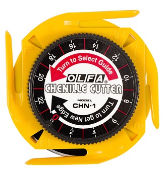 Uniquely designed revolutionary chenille cutter. Features: 4 channel guide sizes from narrow to wide width. 24 new blade edges. Cuts curved and straight lines. Accommodates both right- and left-handed users. A cute carrying case convenient for carrying and storing the cutter is included.