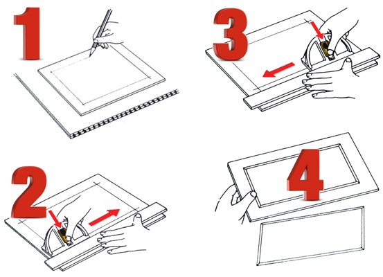 • Easily cuts a 45-degree bevel from matting board