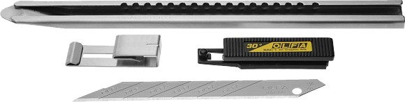 Graphic artists truly appreciate the craftsmanship of this OLFA® graphics knife. Made of stainless steel, the knife easily cuts cardboard, plastics, foam board, Gator Board and more. The knife's pocket clip conveniently doubles as blade snapper.