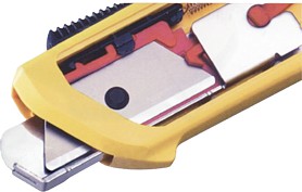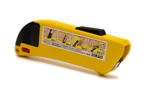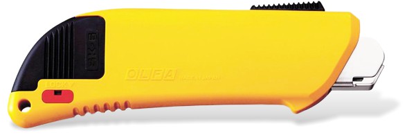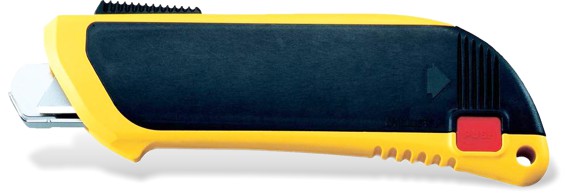 Make safety a priority by choosing this OLFA® safety knife. The blade is shielded with a spring-activated guard that causes it to retract when it loses contact with the cutting surface. Use this knife for cutting light to heavy-duty materials such as cardboard, packaging, film, trimmings, shrink wrap and strapping.