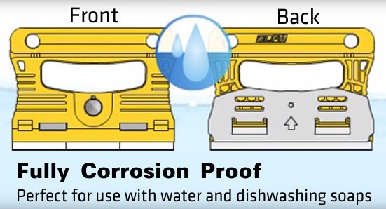 Stainless steel blade is perfect for use with dishwashing liquid or dish bleach.