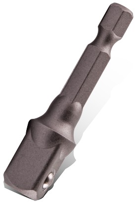 The square adaptor features a hex insert and a ball-detent end that can be used with sockets.