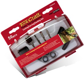 The set includes a total of 50 cutting and carving mini tools that can be used with any Tork Craft rotary mini tools.