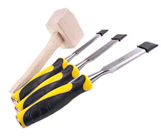 Chisel Set Wood 3 Piece Plus Wooden Mallet Blister