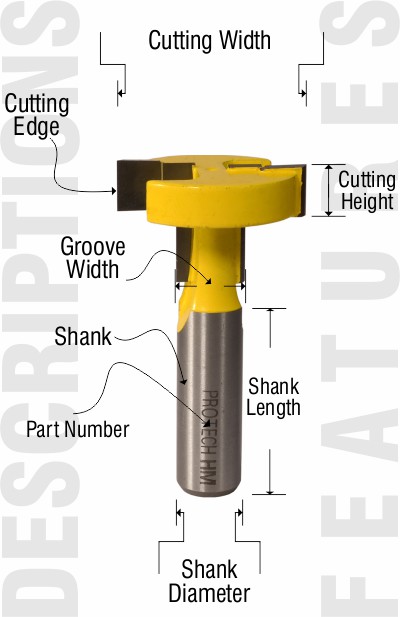 These T-slot cutters will allow you to cut both the groove as well as the wider slot in one pass. A carbide cutting edge is part of the neck of the router bit. The anti-kickback design allows for better performance and reduced vibration under cutting load.