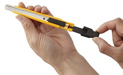 blade snapper tool. Use the knife to cut through packaging, shrink wrap, vinyl,