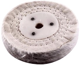 An unstitched buff is used with polishing (finishing) compound on metals. Each fold/leaf of material is approximately 1mm thick.