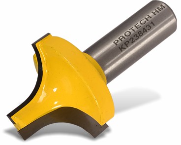 This very special router bit is a round over bit with a slightly longer straight cutting edge at the bottom. Round overs are classified by the radius they cut. A ½ inch radius bit (12,7 mm) cut a round over with a ½ inch radius.